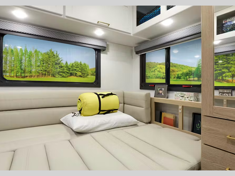 - Cab-Over Sleeping Area with Telescoping Bunk Ladder
